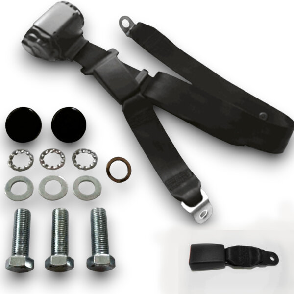 Dreipunkt Automatik Sicherheitsgurt 15cm Lasche schwarz für Skoda Oldtimer & Youngtimer