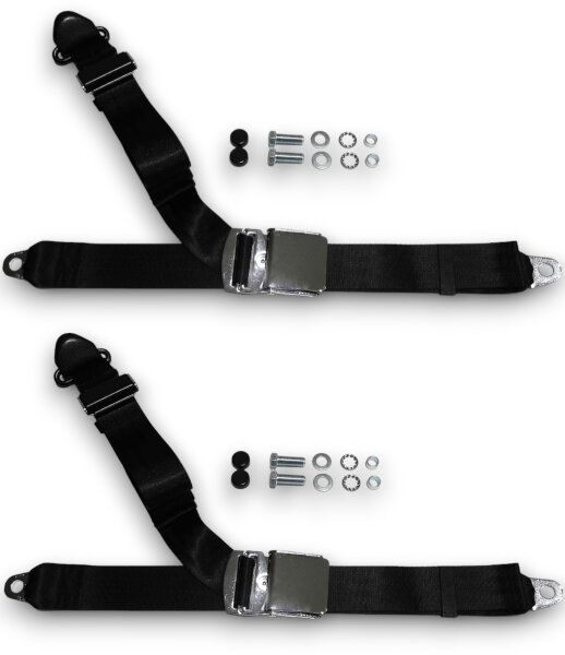Sicherheitsgurt Gurt Dreipunkt Chrom schwarz für Mercedes 190 SL Set