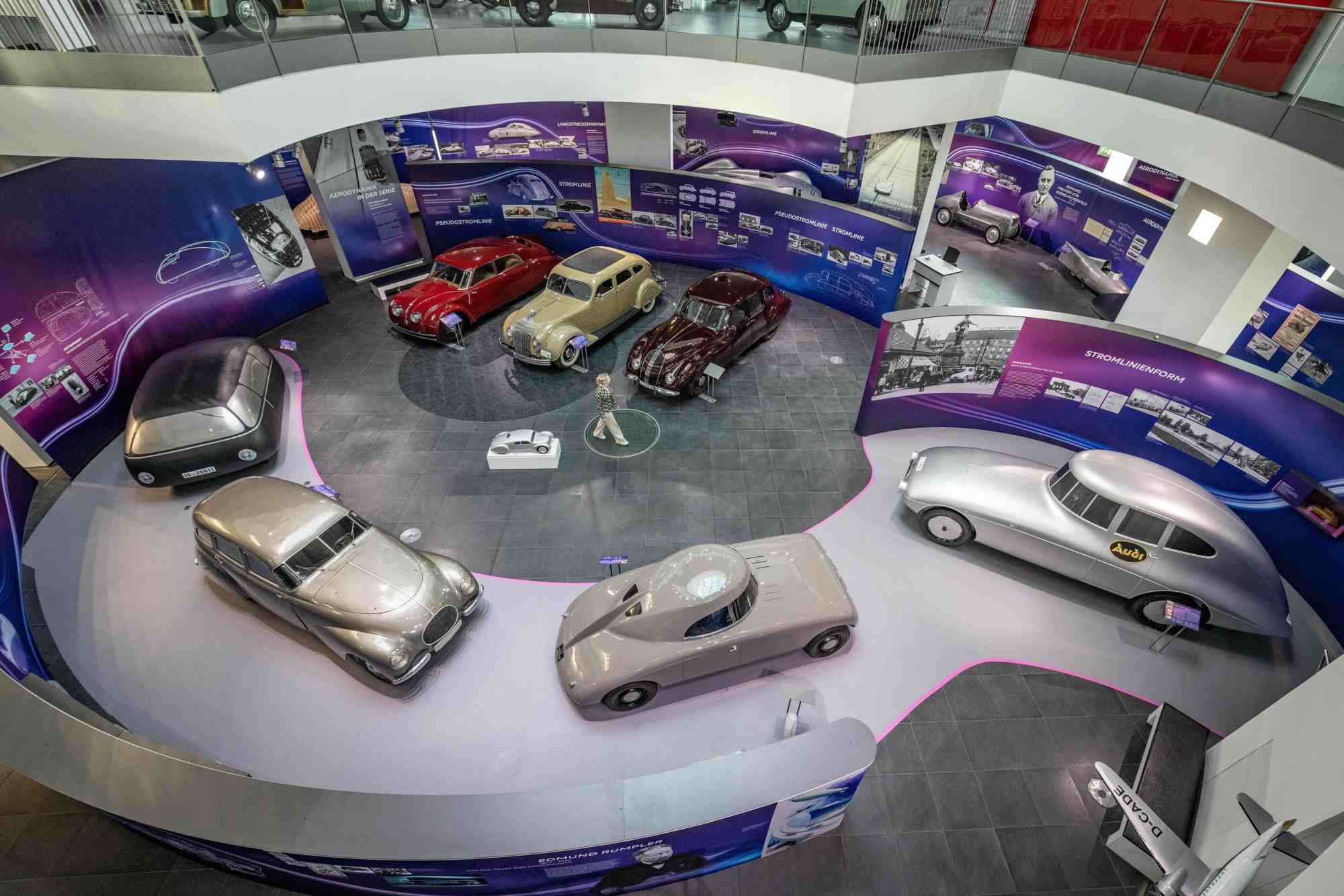 - Ebene 1: Noch eine Ebene tiefer finden sich spezielle Sonderausstellungen, deren Inhalte mehrfach im Jahr wechseln. Die Themen decken die Bereiche Design, Mobilität und Automobilgeschichte ab.